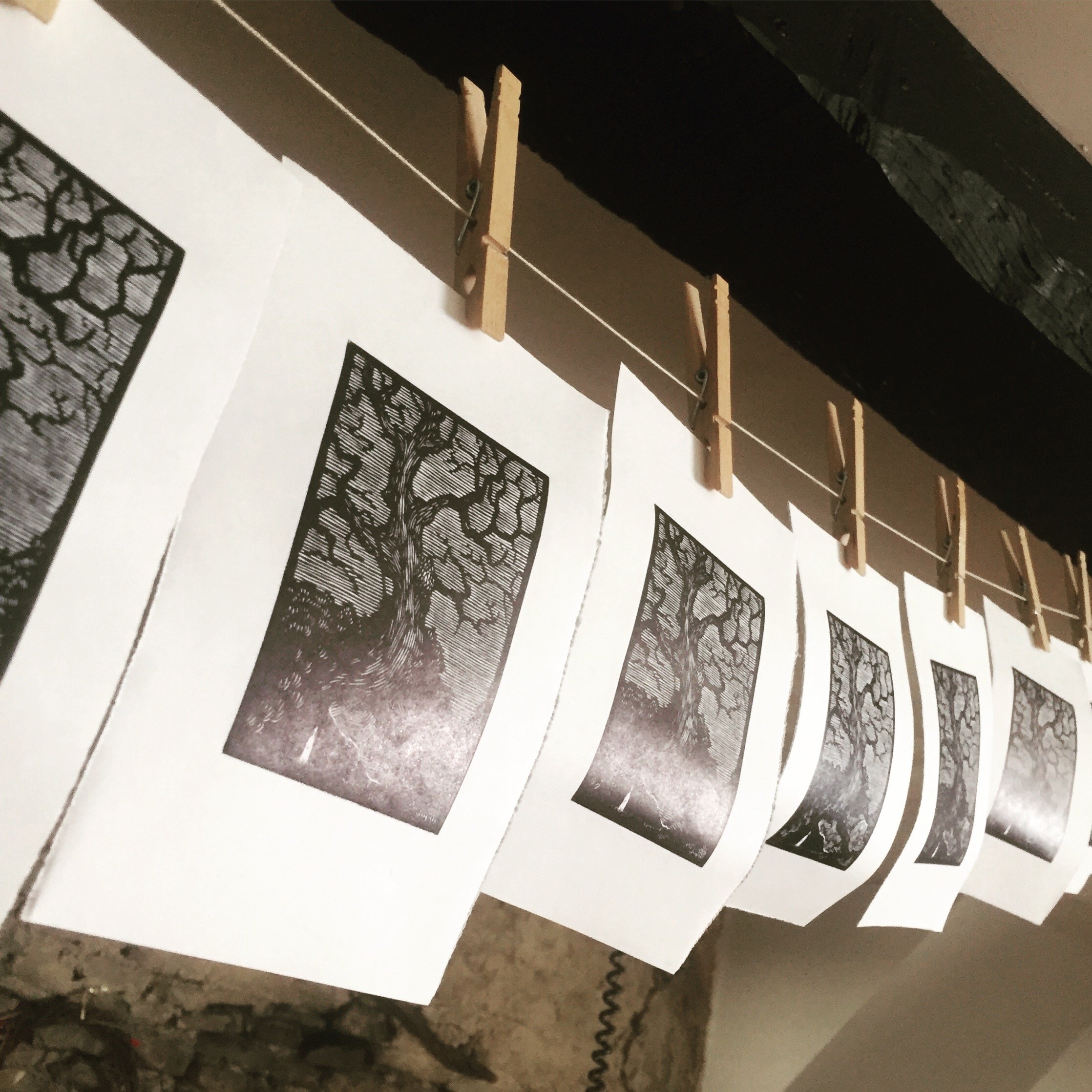 My illustrations are made at home, with wood, Lino, ink and paper.